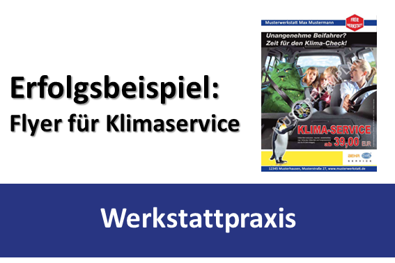 © IAM-NET.EUKlimaservice gehört bei in vielen unabhängigen Werkstätten zum Standardleistungsangebot – nur müssen die Kunden das auch erfahren! Die Flyeraktion einer Unternehmerkollegin, mit der sie ihre Kunden über die Notwendigkeit des Klimaservice zusammen mit einem guten Angebot aufklärt, ist für ihr Unternehmen zum vollen Erfolg geworden. Wir zeigen Ihnen, wie sie das gemacht hat.