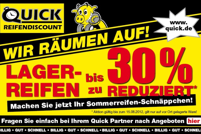 Bild: QuickSelbstverständlich haben auch Sie saisonale Schwankungen in Ihrer Auslastung, doch sind diese lange nicht so stark, wie die bei den reinen Reifenfachbetrieben und Reifenketten. Mittlerweile haben die Strategien dieser Handelssysteme, mehr Auslastung über den Kfz-Service zu erreichen, konkrete Formen angenommen. Teilweise liegt der Autoservice-Anteil bereits bei 50 Prozent - Tendenz steigend. Für Sie ein Warnsignal.